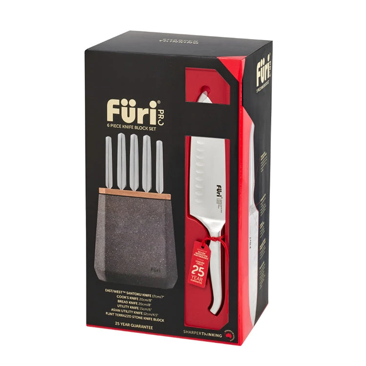 Modernise your kitchen with the Furi Pro Stone Knife Block Set in Flint Terrazzo!