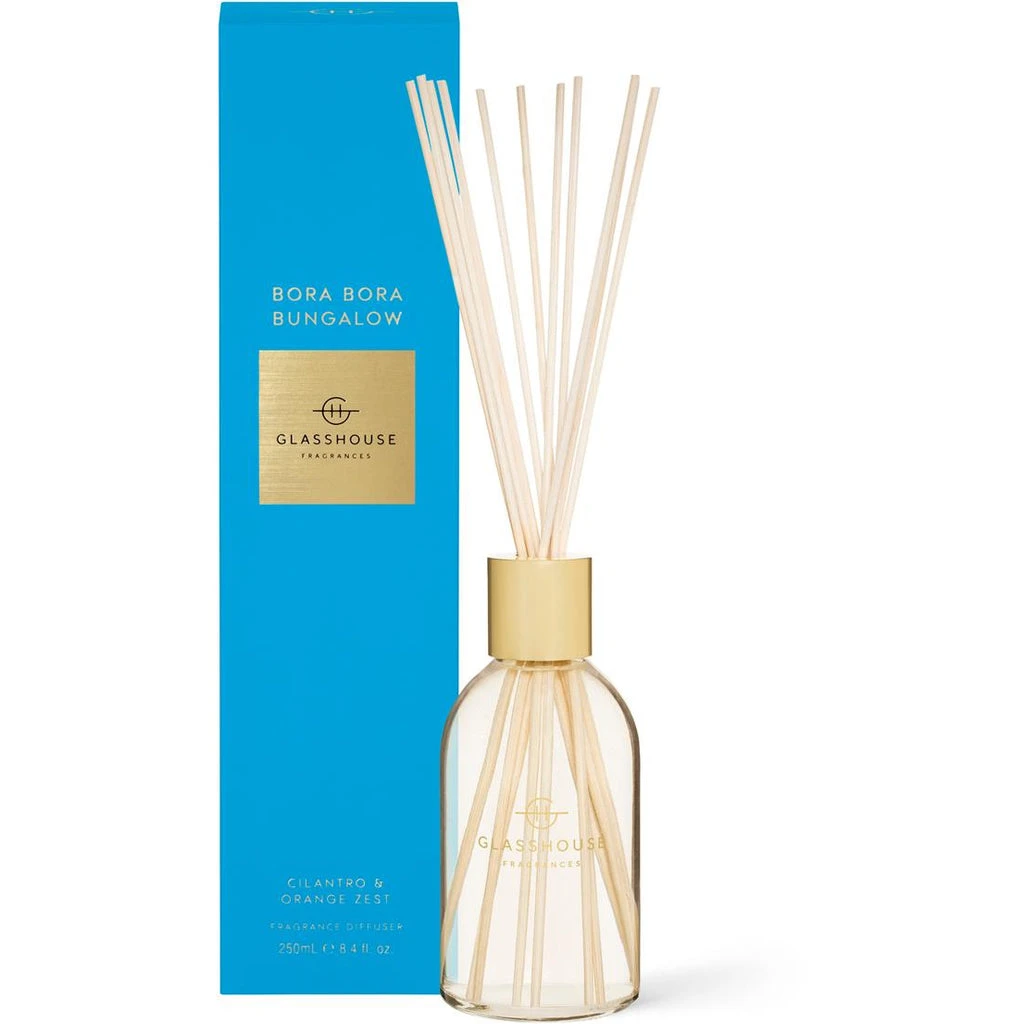 Imagine your sunning yourself underneath the Bora Bora sun on the deck of your private and magical bungalow with the Glasshouse Bora Bora Bungalow – Cilantro & Orange Zest 250ml Diffuser. Perfect for creating a warm and welcoming atmoshpere in any room of the house, this diffuser is made in Australia and is extremely low maintenance. With a generous 250ml capacity, this diffuser is both reliable and enduring as it will last up to 3 months if it’s kept out of direct sunlight.