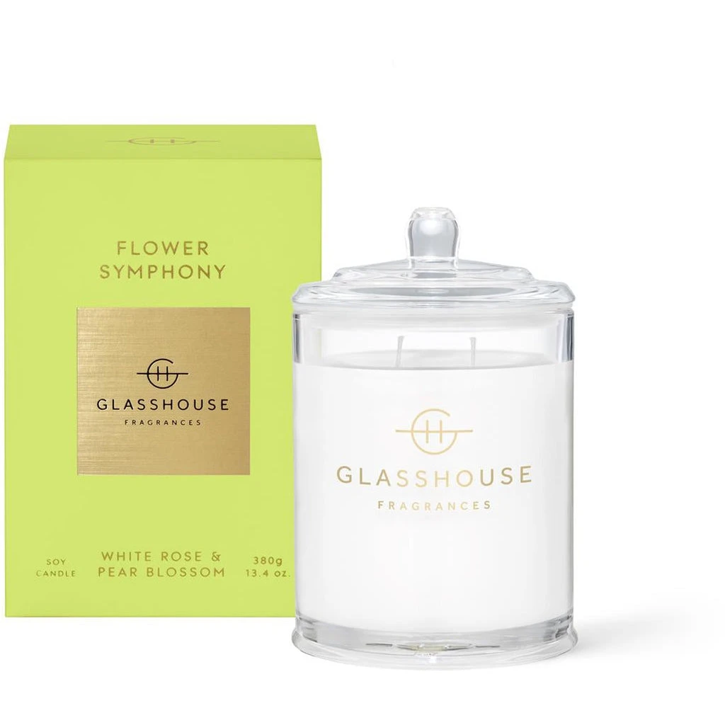 Let your senses take over and transport you to a place of ultimate relaxation with the Glasshouse Flower Symphony – White Rose & Pear Blossom 380g Candle.
