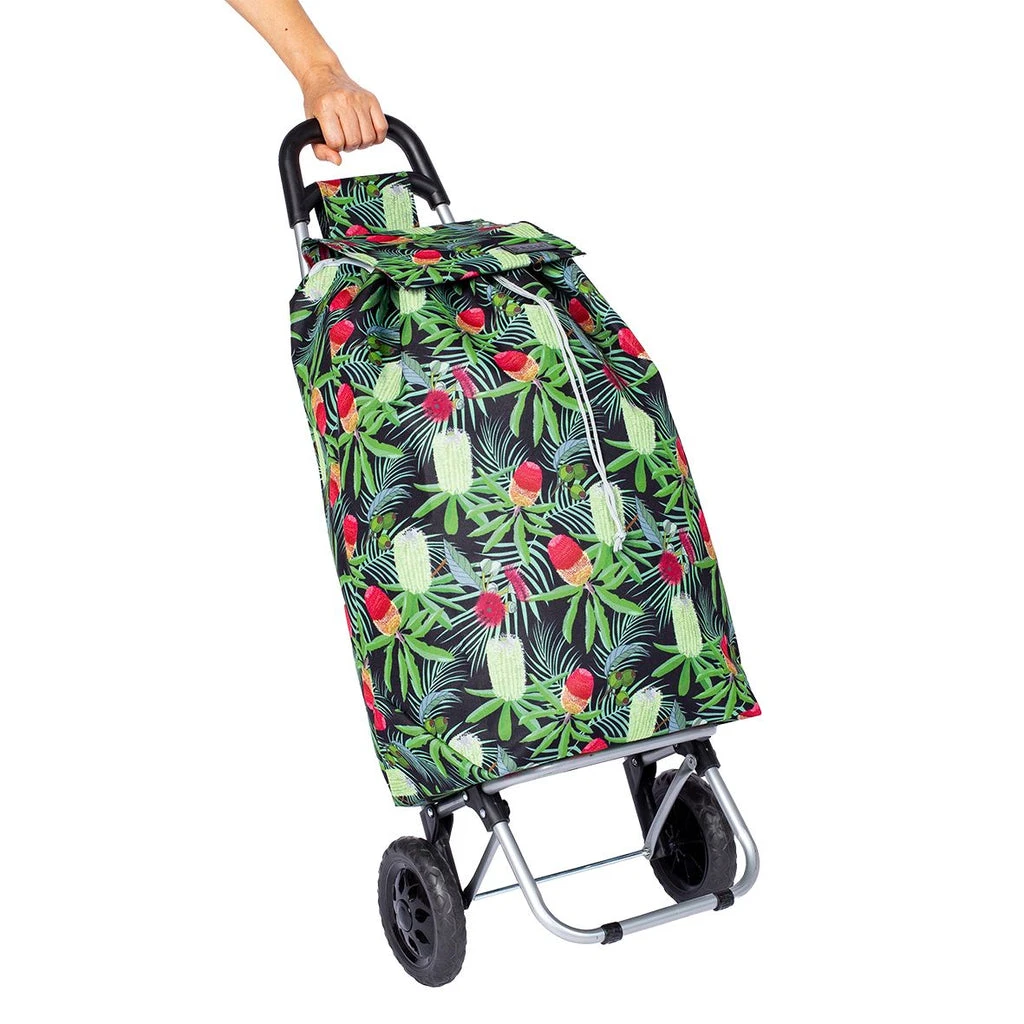 With a large 45 L capacity bag, this shopping trolley provides ample space to carry your groceries or items, designed with a patterned fabric exterior inspired by banksia florals.