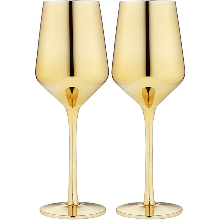 Host a fancy night in with the Tempa Aurora Gold Set of 2 Wine Glass. Crafted from glass with an electroplated mirror finish, the contemporary Tempa Aurora is a great option for your new party glassware.