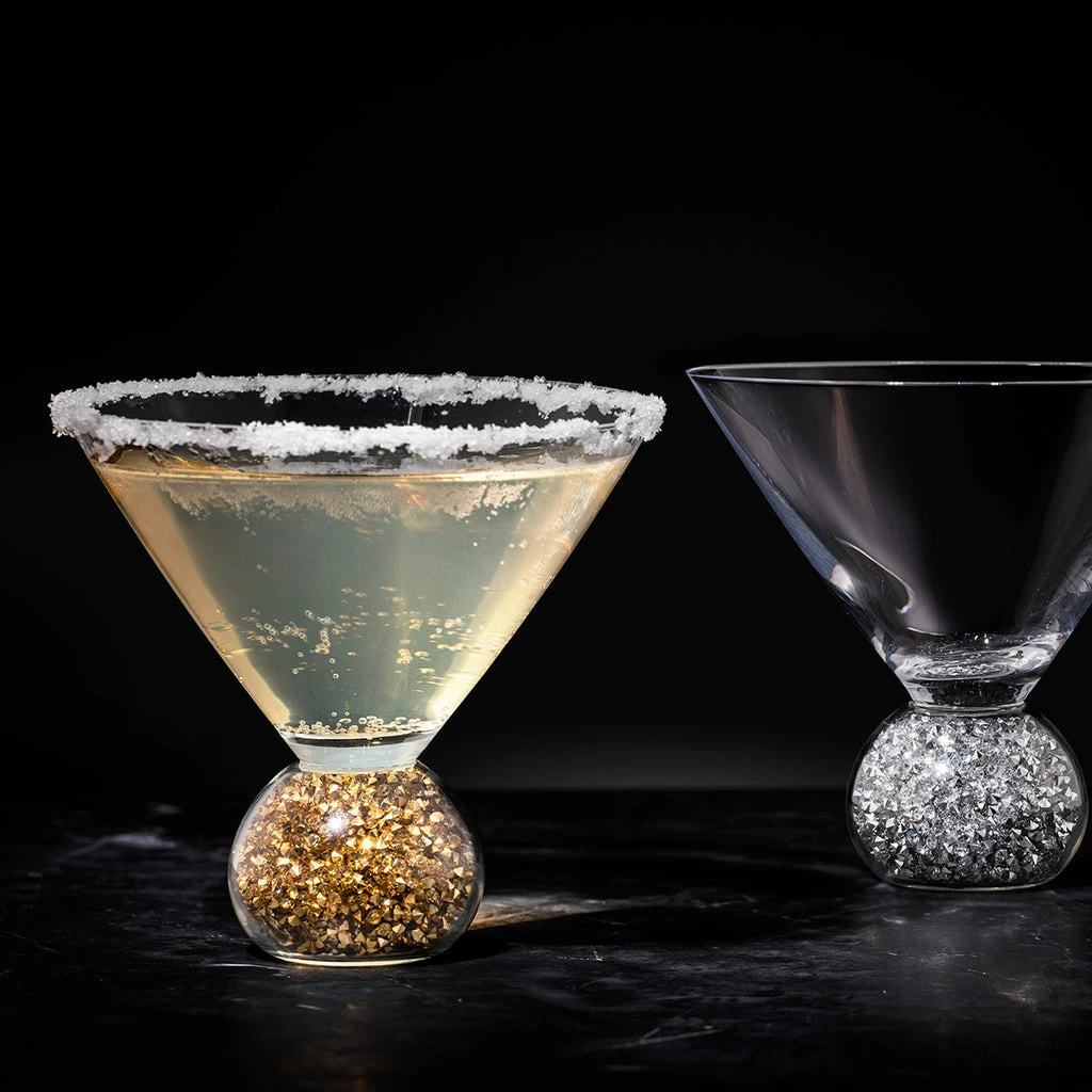Whether you’re celebrating a special occasion or hosting friends over for an intimate dinner gathering, Tempa Kiara glassware features stunning rhinestone-filled glass bases that comes in silver and gold. A timelessly elegant addition to your home and table, they are crafted from durable mouth-blown crystal glass for a modern look & feel.
